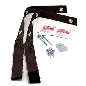This is the strongest, most versatile strap available and is easy to install. Peel and press one end to the furniture, screw the other end into the wall stud through grommet hole. Each kit contains two 15 nylon straps, enough for one large item of furniture. Straps won't damage wood and hide from view. Available in various colors. Flexible nylon straps are safer than ridge L brackets These furniture straps are the strongest most versatile straps available today Easy to install No holes in the furniture, just peel and press to the furniture Great for file cabinets, large copy machines, bookcases, armoires, hutches, antique cabinets, grandfather clocks, entertainment centers, fish tanks, washers, dryers, and more Contains 2 18-in long nylon straps Brown